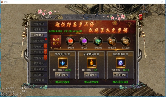 3.回馈豪礼 活动期间购买累计祝福值解锁超值祝福豪礼 5000祝福值奖励随开服时间变动